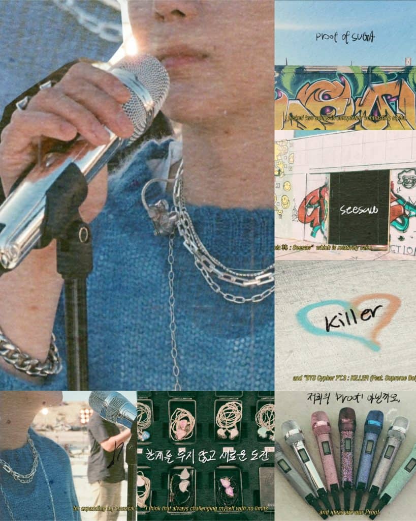 21 Mayıs’ta SUGA; bir sanatçı olarak müzikal çeşitliliğinin kendisine ve grubuna neler kattığından ve yakında çıkacak olan antoloji albümleri Proof‘a, neden Trivia 轉: Seesaw ve BTS Cypher PT.3 : KILLER şarkılarını eklemeyi seçtiğinden bahsetti.