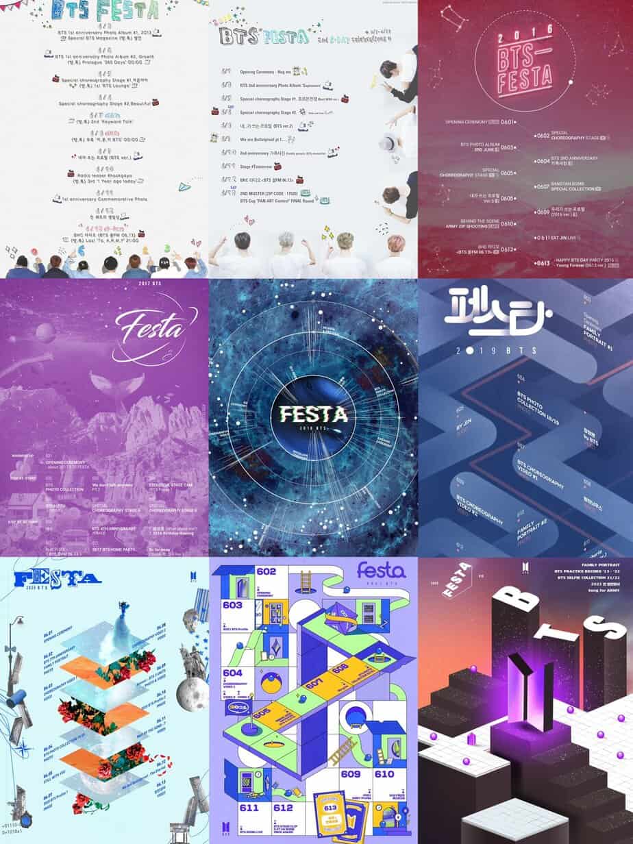 BTS, her yıl 13 Haziran’daki yıl dönümlerini, büyük güne kadar geçen süreçte yeni içeriklerin yayımlandığı FESTA adlı bir etkinlikle kutluyor. Bu yıl BTS ve hayranları ARMY, 3-13 Haziran arasında 9. yıl dönümlerini kutlayacaklar.
