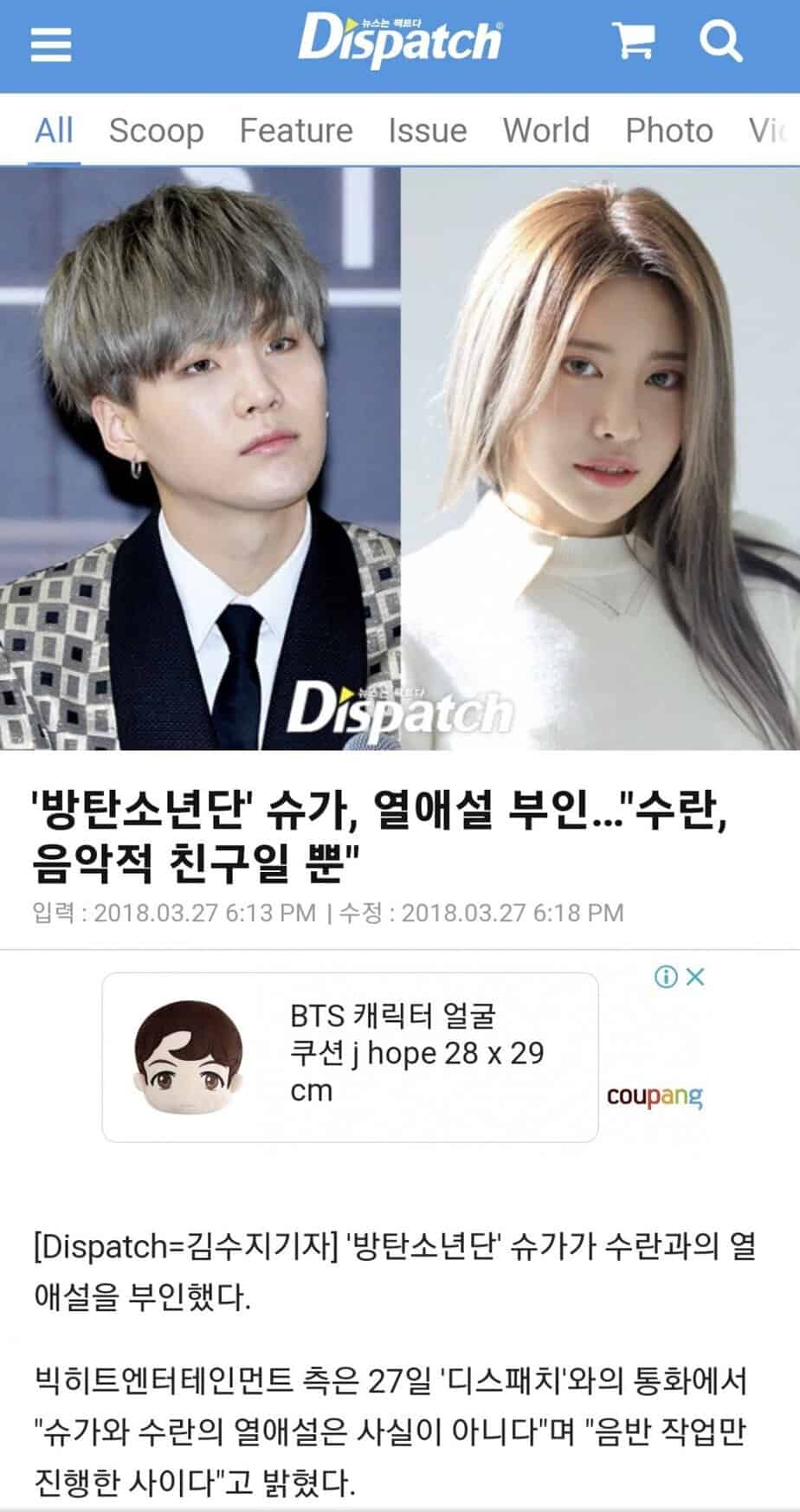 Geçmişte, Suga ve Suran’ın sevgili dedikoduları çıktığında, Big Hit Dispatch ile temasa geçti ve bunu doğrudan yalanladı.
