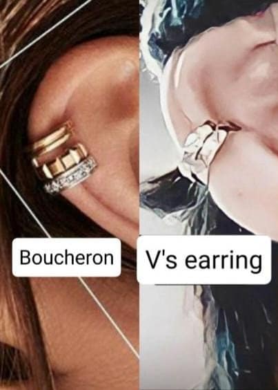 3.[+239, -23] Armyler ortalıkta V’nin kulaklığının Chanel değil Boucheron olduğunu söylüyorlar ama küpenin detaylarına bakarsanız kesinlikle Boucheron değil.