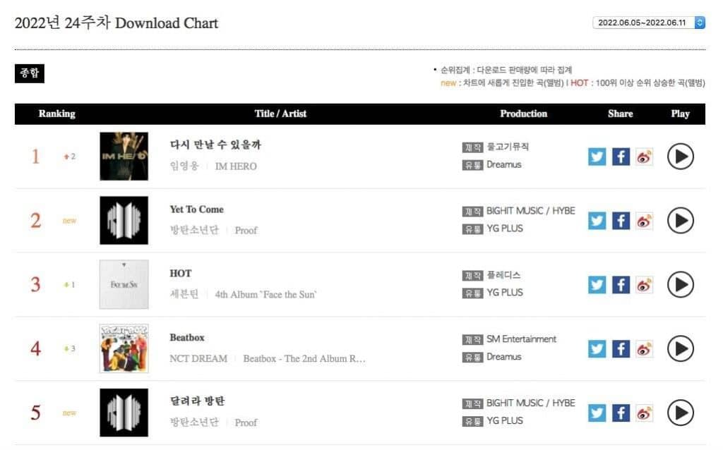 Gaon, 5-11 Haziran haftası için liste sıralamalarını açıkladı!