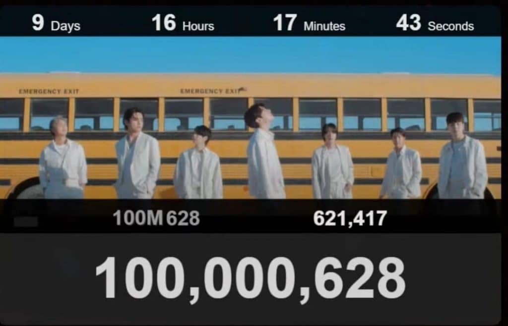 BTS, Yet to Come‘ı ilk kez 10 Haziran’da saat 07:00’de yayımladı. Yani müzik videosunun bu dönüm noktasına ulaşması yaklaşık 9 gün, 16 saat ve 17 dakika sürdü.