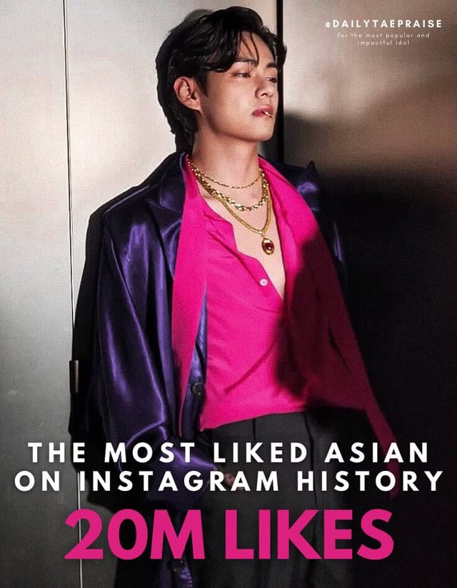 Kim Taehyung is The First and Only Asian ever to surpass 20M likes on Instagram History becoming The Most Liked Asian in the world pic.twitter.com/5KneGQiaBS