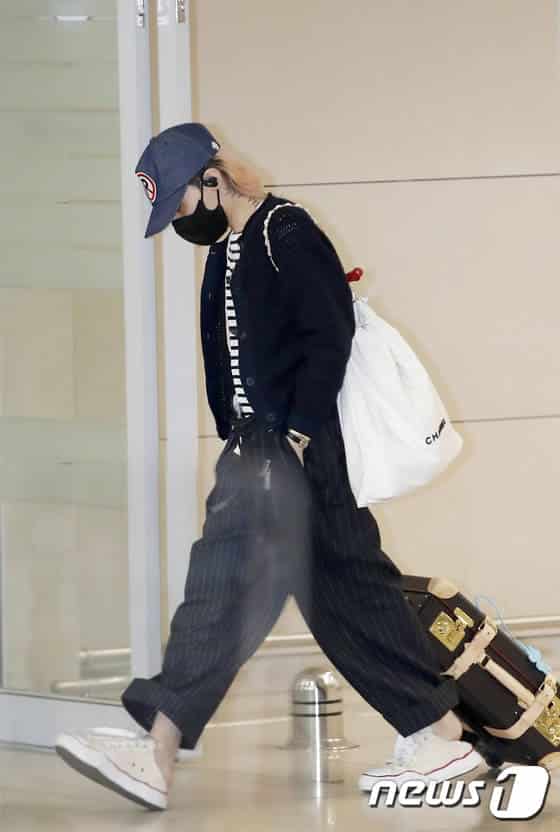 Kombinine uyması için spor ayakkabı giymesinin yanı sıra, Chanel 2022/23 Cruise Show ziyaretini bitirdikten sonra 12 Mayıs’ta Incheon Uluslararası Havalimanı Terminal 2’den eve dönerken de ayakkabıları giydiği görüldü.