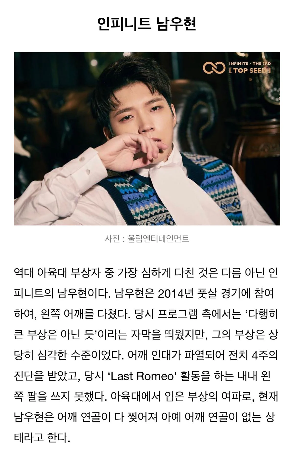 - 2015 ISAC’te, yarış yaparken üyesi Jinyoung’la birlikte yaralandı ve daha sonra bacağı alçıda görüldü