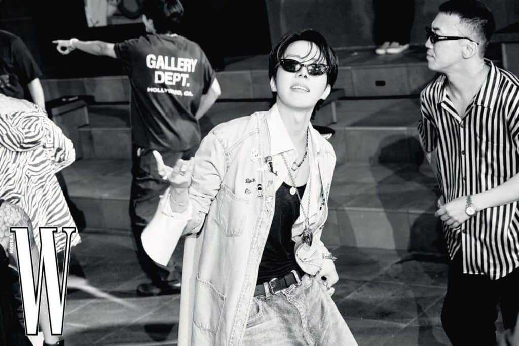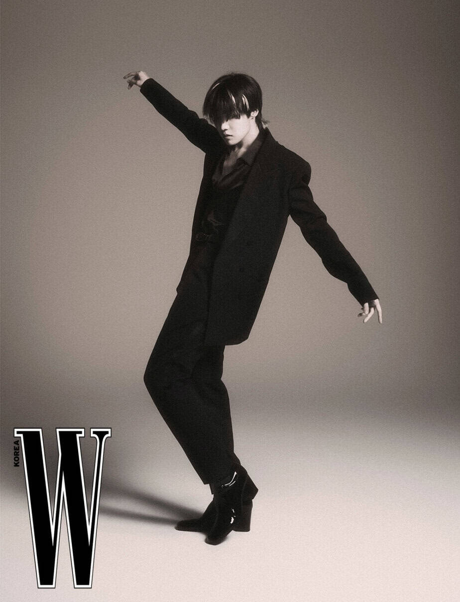 j-hope, bir röportaj için önümde otururken heyecanlı ve coşkulu görünüyordu. Grubun en enerjik üyesi miydi? Başkan Biden’ın kendisinden önce yedi üyeyle “Butter” ile dans ettiği zamanı açıkça hatırlıyorum; j-hope, el çırpmaya başlayan ilk kişiydi. Ne zaman canlı tepkisini görsem hareketleri ritmik bir performans gibi oluyor. W Korea‘nın kapağını çekmeye başladığımız anda modunu ve etrafındaki havayı değiştirdi. Hafif eğimli omzu ve şık silueti ile hareketsiz dururken bile ritim yarattı. Solo albümünün başlık şarkısı “Arson“un müzik videosunda j-hope, patlamanın ortasında yürüyordu. Orada bile yürüyüşü birçok duygu ve anlam taşıyor. Bana öyle geliyor ki, bir müzisyenin performansı sadece basit bir koreografi değil aynı zamanda eylemin bir parçası.