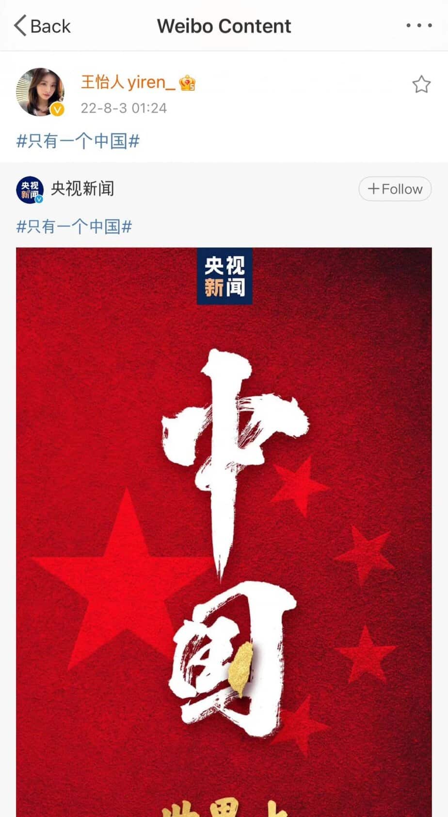 Winwin ve Yiren’in gönderileri siyasette gerilimin yükseldiği ABD Başkanı Nancy Pelosi’nin 2 Ağustosta Tayvan’a gelmesinden sonra paylaşıldı. Çok sayıda Çinli ünlüler ve netizenler ABD’li Başkanın ziyaretine olan öfkesini Weiboda gösterdi. Bu hareketin Çin-Tayvan ilişkilerinin kötüleşmesine neden olduğu iddia ediliyor.