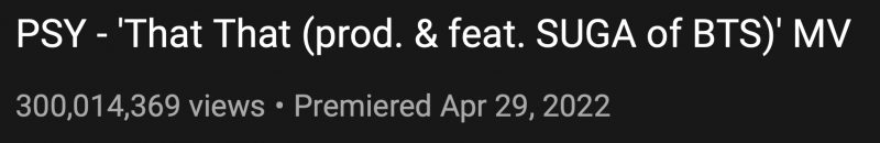 That That artık 2022’de 300 milyon izlenmeye ulaşan ilk K-Pop müzik videosu ve ayrıca PSY‘ın Gangnam Style, Gentleman, Hangover, Daddy ve Oppa is Just My Style (HyunA’nın yer aldığı “Gangnam Style”ın alternatif bir versiyonu)‘dan sonra bu başarıya ulaşan 6. müzik videosu.