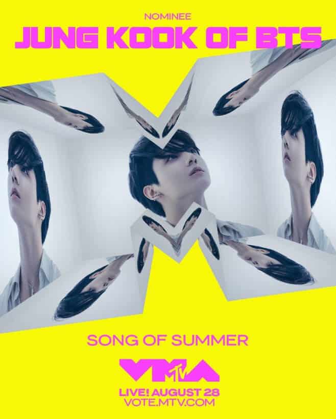 Jung Kook, 2022 MTV Video Müzik Ödülleri’nde Charlie Puth ile iş birliği şarkısı “Left and Right” ile “Yaz Şarkısı” kategorisinde adaylık aldı.