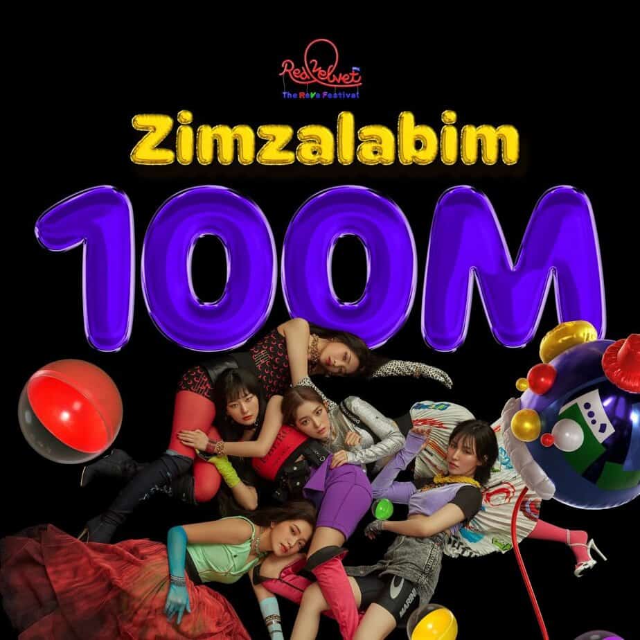 31 Ağustos’ta Red Velvet‘in 2019 şarkısı “Zimzalabim“, Youtube’da 100 milyon izlenmeye ulaşarak bunu başaran 11. grup videosu oldu. Bu dönüm noktasına ulaşan diğer Red Velvet müzik videoları şöyle: “Russian Roulette,” “Dumb Dumb,” “Bad Boy,” “Peek-A-Boo,” “Red Flavor,” “Ice Cream Cake,” “Psycho,” “Power Up,” “Happiness,” ve “Queendom.”