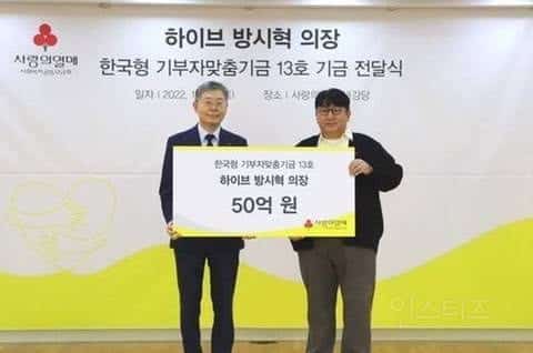 Bang Si Hyuk, imkanları kısıtlı çocuklara yardım etmek için 5 milyar Won bağışladı.