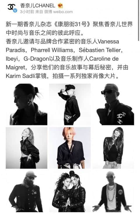 6. [+79, -0] Chanel’in Weibo güncellemesi.. Yalnızca GD’nin renkli fotosunu koydular. Ve röportajda en çok değer verdikleri sanatçının GD olduğunu söyledilerᅮᅮ O cidden Kwon Chanel.