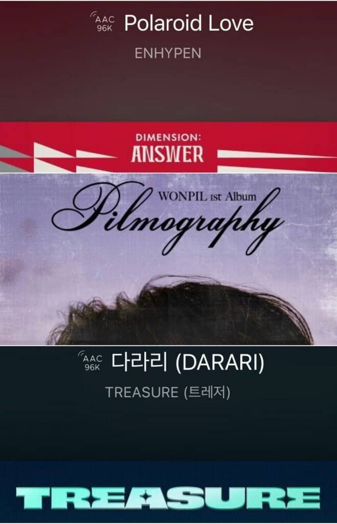 5. [+13, -0] ENHYPEN ve TREASURE’ın grup renklerine bakarsanız, kaç tane şarkıları olursa olsun B-Side şarkılar olduğunu anlayabilirsiniz ㅋㅋㅋ Ama ben ‘A Journey’in, Wonpil’in başlık şarkısı olduğunu sanıyordum..