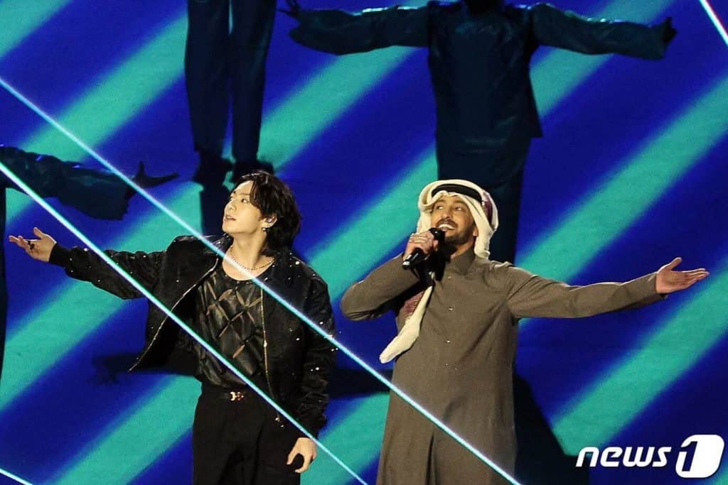 جونغكوك وفهد الكبيسي يقدمان أغنية ” دريمرز” في افتتاح المونديال 🏆