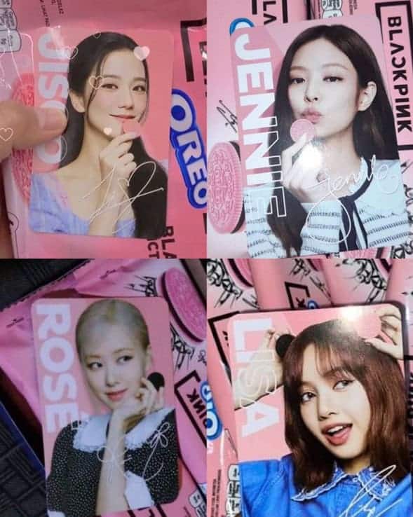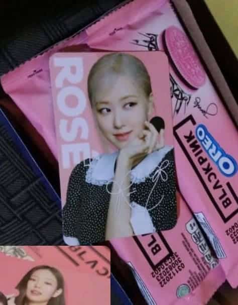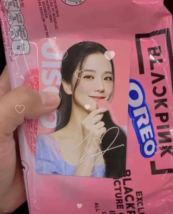 Özel pakette, Oreo markasının yanında BLACKPINK logolu altı küçük paketi içeren büyük taçlı bir kurabiye fotoğrafı yar alıyor.
