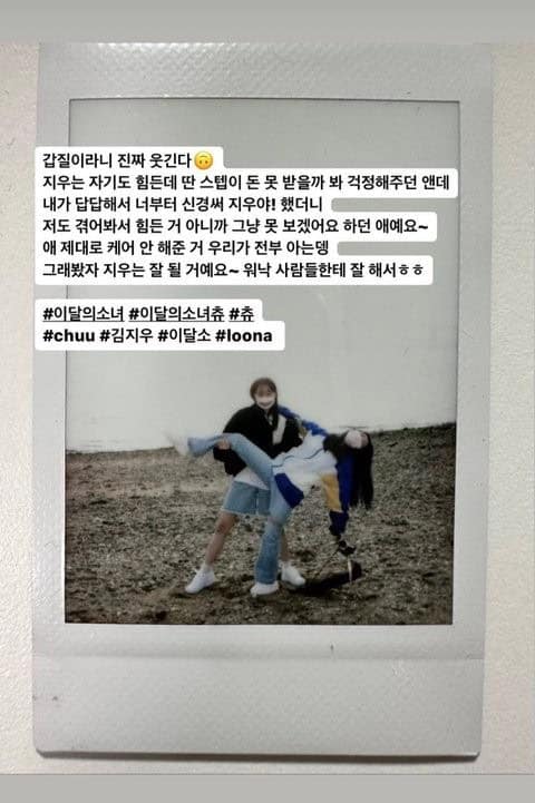 Ancak, yakın zamanda Chuu’nun şiddet içeren dili ve personelimize karşı gücünü kötüye kullandığı söylendikten sonra, soruşturma sonucunda gerçek bulundu. Ajans temsilcileri personelden özür diliyor ve onları rahatlatıyor ve bunun sorumluluğunu üstlenmeye ve Chuu’yu LOONA’dan çıkarmaya karar verdik.