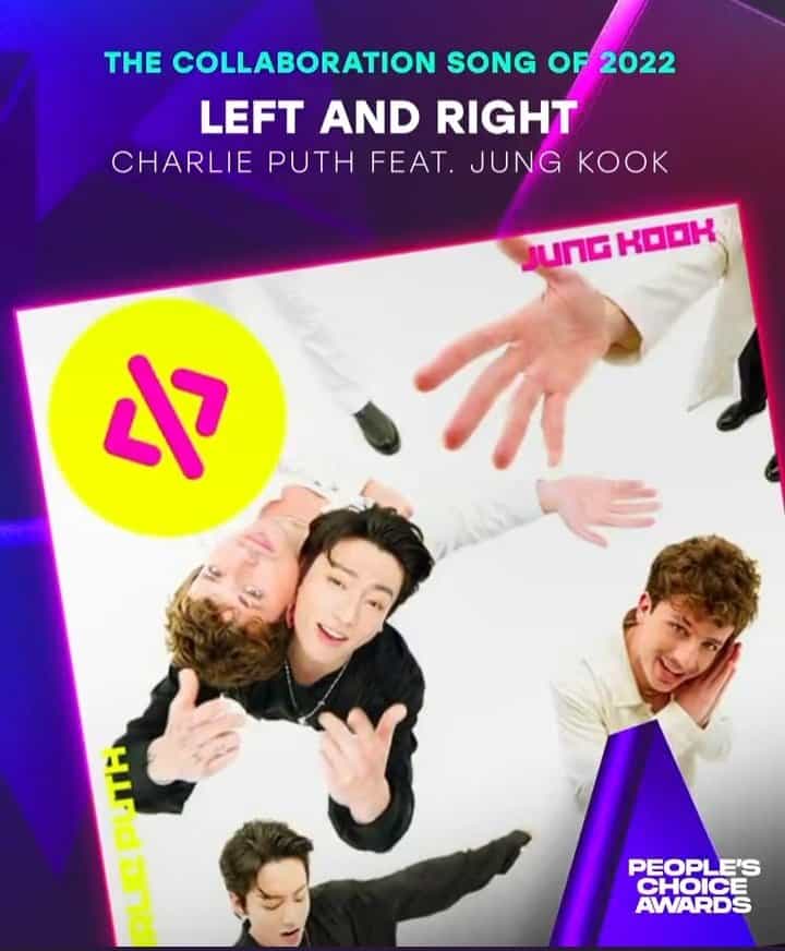 Son olarak, BTS‘ten Jung Kook ve Charlie Puth‘un ortak şarkısı Left And Right, 2022’nin İş Birliği ödülünü kazandı. Hit ortak şarkı, Billboard‘un yıl sonu Global 200 listesi 106. sırada ve Dijital Şarkı Satışları listesinde 30. sırada yer aldı.