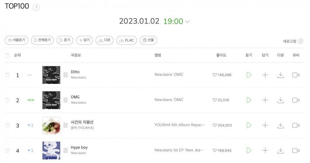 Ayrıca NewJeans, OMG ile liste reformundan sonra Melon‘da 1. saatinde en yüksek Benzersiz Dinleyici Sayısı‘na sahip sanatçı olarak rekor kırdı.