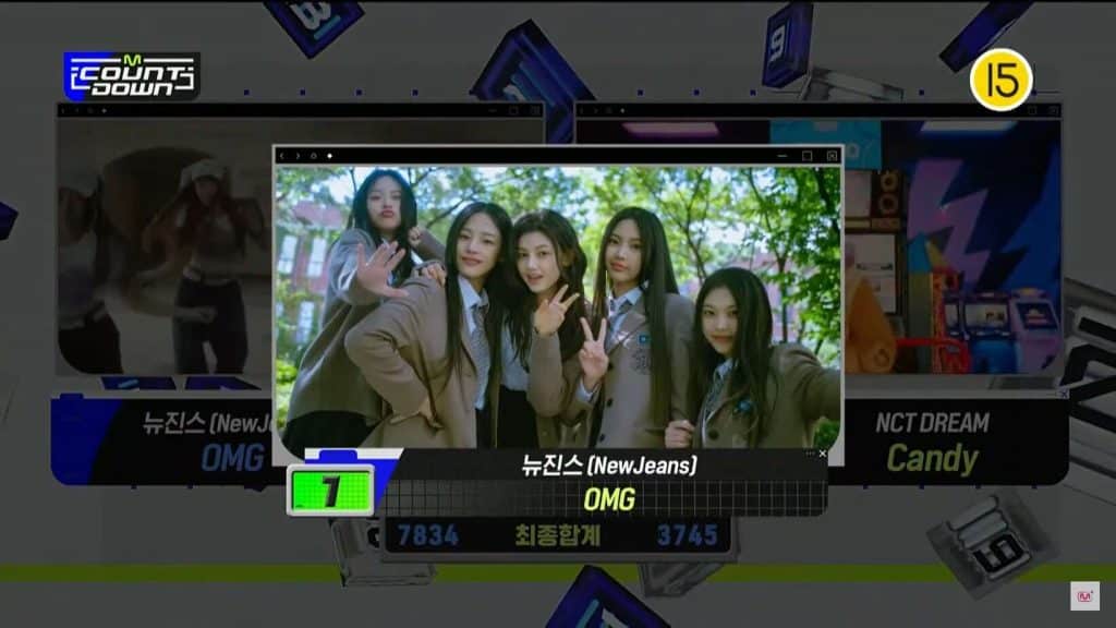 Toplam 7.834 puanla NewJeans‘in OMG şarkısı, bu hafta 1 numara oldu! NewJeans canlı yayında bulunamasa da, sunucular gruba ödüllerini verme sözü verdi.