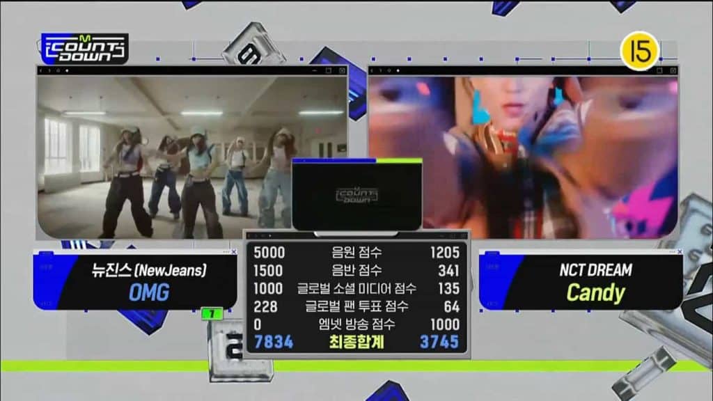 Mnet‘in M COUNTDOWN programının 12 Ocak tarihli yayınında OMG ile NewJeans ve Candy ile NCT DREAM birincilik için aday gösterildi.