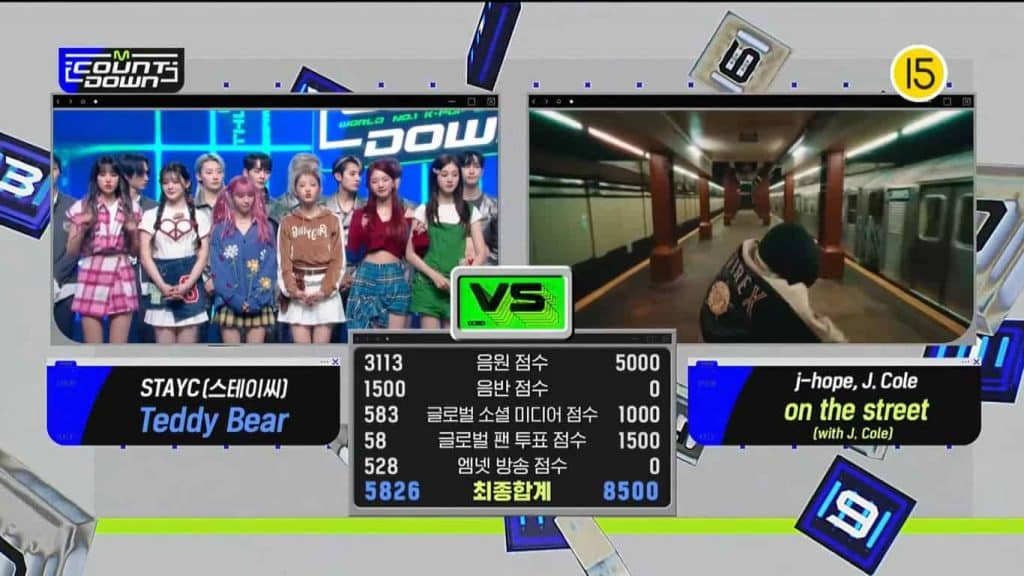 Mnet‘in M COUNTDOWN programının 9 Mart yayınında, birincilik adayları BTS‘ten j-hope ile J. Cole iş birliği on the street ve STAYC‘nin Teddy Bear şarkıları oldu.