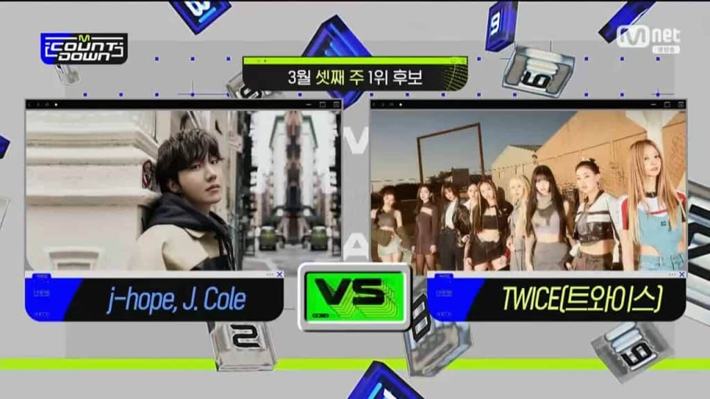Mnet‘in M COUNTDOWN programının 16 Mart yayınında, birincilik için adaylar BTS‘ten j-hope & J. Cole iş birliği on the street ve TWICE‘ın SET ME FREE şarkıları idi.