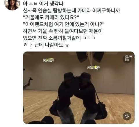 1. [+47, 0] Bu yüzden yeni çıkış yaptıklarında yeni pratik odalarında aynaların içinde kamera var mı diye bakıyorlardı ㅋㅋㅋㅋㅋㅋㅋ Haㅜㅜ bu ne böyle