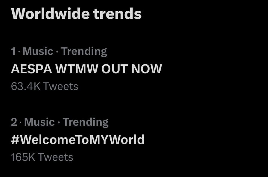 Şarkının yayımlanması ile birlikte “aespa_WelcomeToMYWorld” ve “AESPA WTMW OUT NOW” Twitter gündeminde ilk 2 sıraya yerleşti.