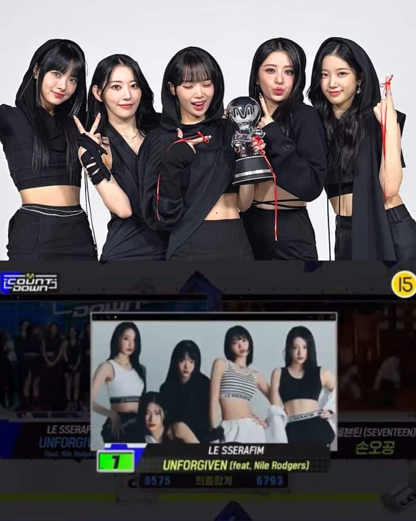 11 Mayıs’ta Mnet‘in, “M COUNTDOWN” programında LE SSERAFIM’in “UNFORGIVEN” şarkısı SEVENTEEN‘in “Super” şarkısına karşı birincilik için aday gösterildi. Nihayetinde galibiyeti elde eden, 8.575 puanla “UNFORGIVEN” oldu.