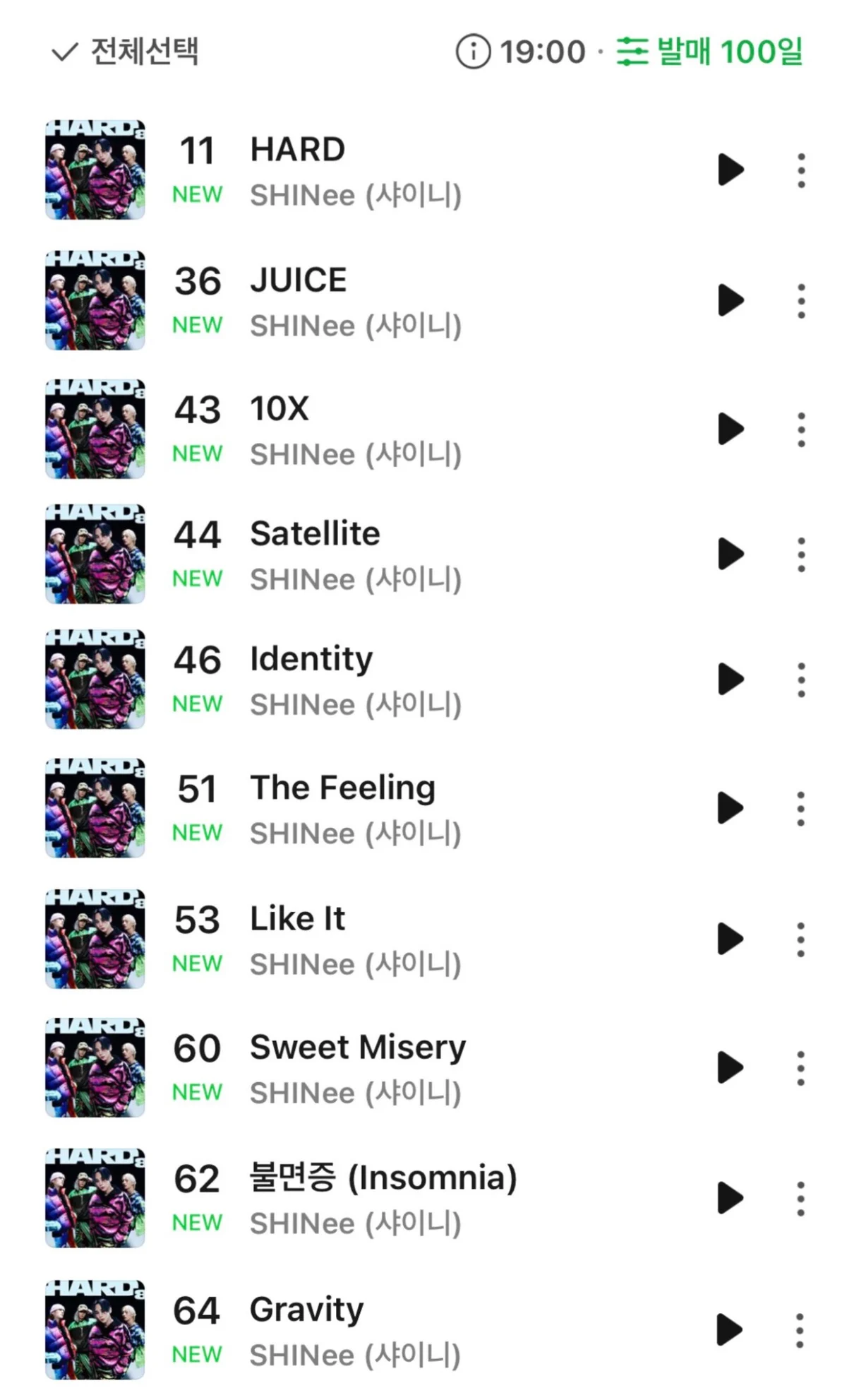 [Theqoo] SHINee’nin Yeni Başlık Şarkısı “HARD”ın, Melon Listelerindeki Durumu
