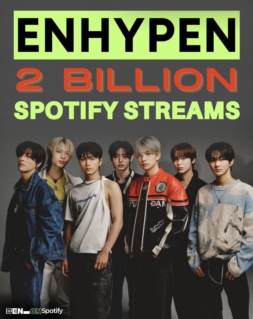 Aynı zamanda ENHYPEN, Spotify‘da 1 milyar dinlenmeye en hızlı ulaşan K-Pop erkek grubu konumunu da elinde tutuyor.