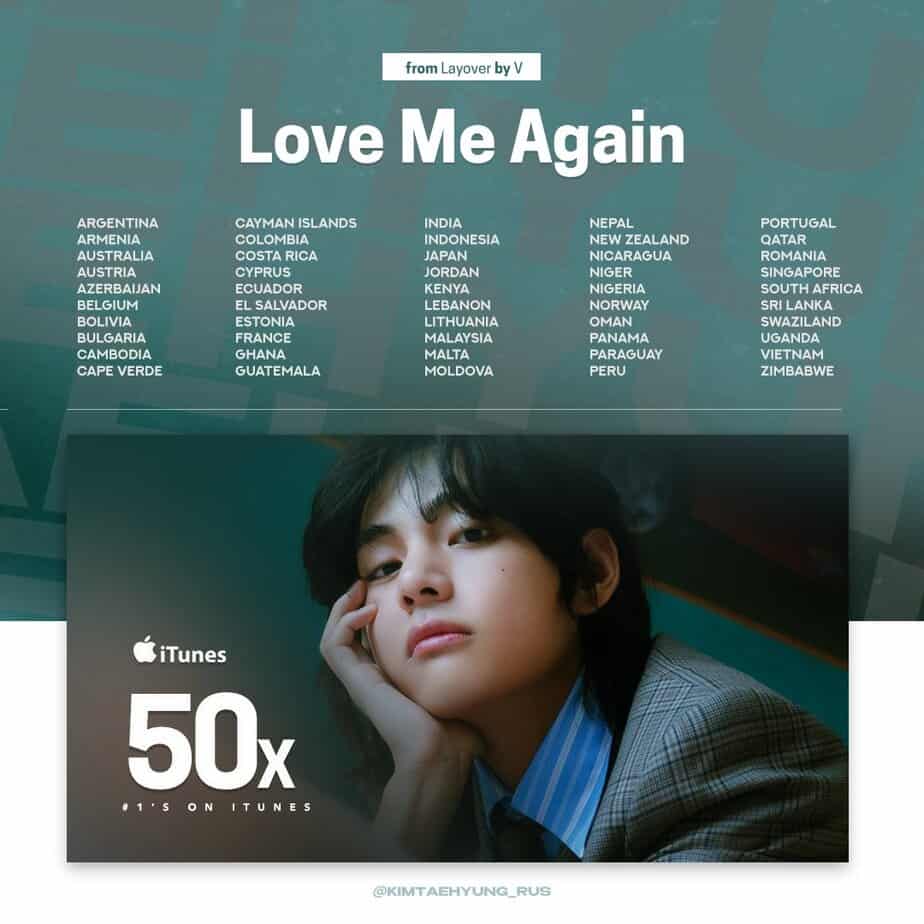 Love Me Again; Avusturya, Bulgaristan ve Romanya da dahil olmak üzere en az 50 farklı ülke ve bölgede 1 numaraya ulaştı.