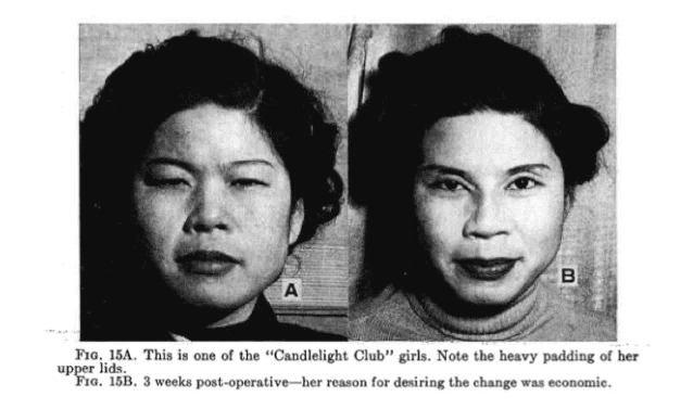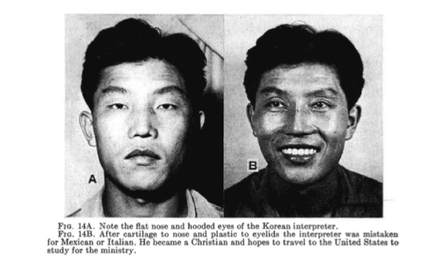 Dr. Millard’ın iddiasına göre bir gün Koreli bir tercüman, kendisine gelerek gözlerini genişletmesini ister. Çünkü Amerikan askerleri, tercümanın kısık gözlerinden ne düşündüğünü anlayamıyor ve bu yüzden ona güvenmiyorlardır. Bunun üzerine Dr. Millard; gözlerdeki Asyalılığı azaltmak için burun köprüsünü yükseltmeye, göz kapağının iç kıvrımını kesip üzerindeki yağ tabakasını çıkarmaya ve böylece çift göz kapağı yapmaya karar verir.