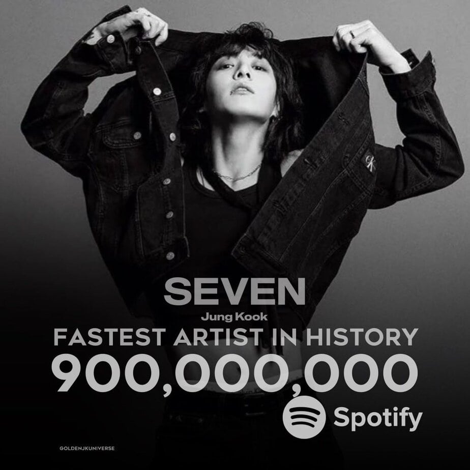 14 Ekim’de, Jung Kook‘un resmi çıkış teklisi Seven (feat. Latto), Spotify‘da 900 milyon dinlenmeyi aşarak platform tarihinde bu dönüm noktasına ulaşan en hızlı şarkı oldu.