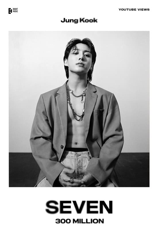 Jung Kook‘un solo şarkısı “Seven (feat. Latto)”nun müzik videosu, 12 Aralık’ta 300 milyon görüntülemeyi aştı. 14 Temmuz’da yayımlanmasının üzerinden yaklaşık 4 ay, 27 gün ve 13 saat geçti.