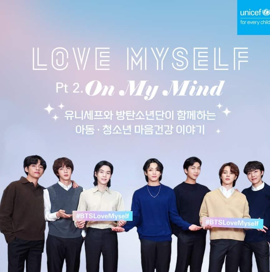 K-Pop süperstarları BTS ve Birleşmiş Milletler Çocuklar Fonu UNICEF, Love Myself kampanyasının ikinci bölümü olan #OnMyMind girişimini 22 Nisan Pazartesi günü duyurdu. Yeni girişim dünya çapında gençlerin ruh sağlığını iyileştirmeyi ve desteklemeyi amaçlıyor.