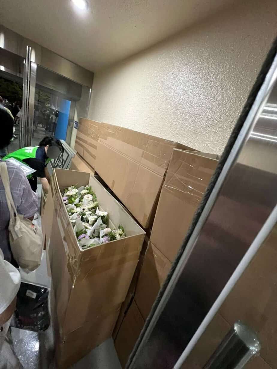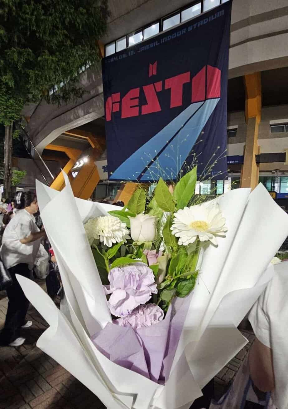 Jin, etkinliğe katılan hayranlarına saat ve çiçek hediye etti.