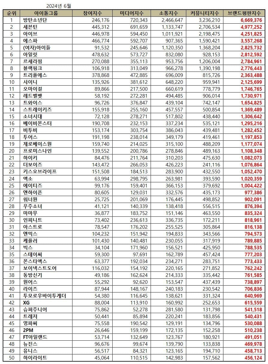 Kore İş Araştırma Enstitüsü, tüm idol grupları için bu ayın marka itibar sıralamasını açıkladı!