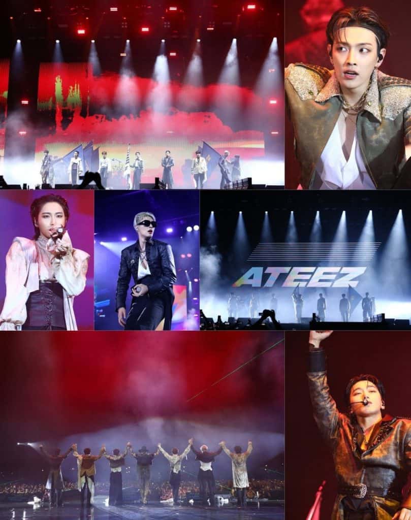 ATEEZ, performansına ilk albümleri ‘TREASURE EP.FIN : All To Action’dan ‘WIN’ şarkısıyla başladı. ATEEZ bayrağı taşıyan koreografileriyle seyirciyi hemen büyülediler. “Our ship only goes one way” ve “Just go, there’s a way ahead” sözleriyle sahnedeki özgüvenlerini yansıttılar. Say My Name ve Guerrilla gibi enerjik performanslarla kalabalığı coşturdular.