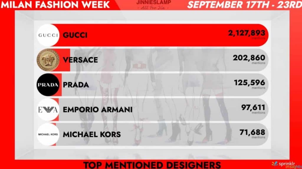 Ayrıca GUCCI, 2 milyondan fazla bahsedilmeyle en çok bahsedilen marka oldu.