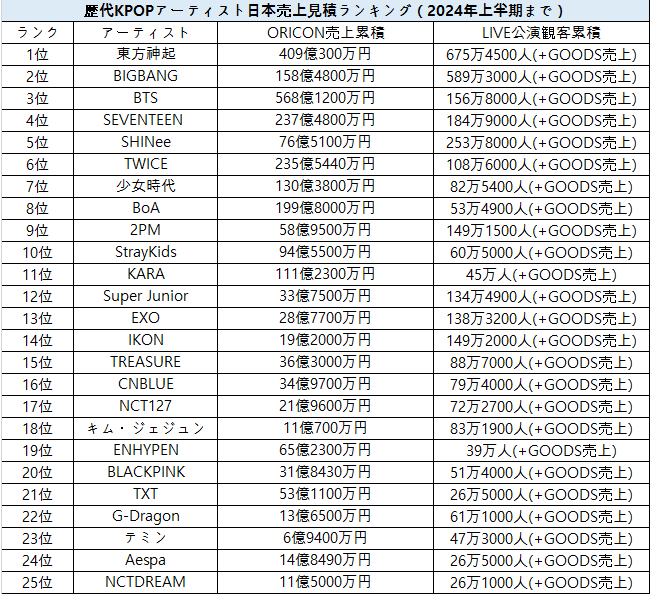 - TWICE (Oricon geliri 218.2 milyar KRW + 1.086 milyon kişi)