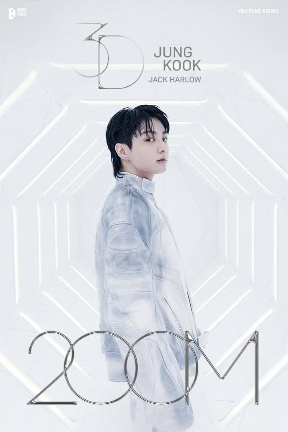 4 Kasım’da, Kore saatiyle 15:30 civarında, Jungkook’un Jack Harlow ile işbirliği yaptığı solo single’ı “3D”nin müzik videosu 200 milyon izlenmeyi aştı. Bu, müzik videosunun 29 Eylül’de Kore saatiyle 13:00’te yayınlanmasından bir yıl, bir ay ve altı gün sonrasına denk geliyor.