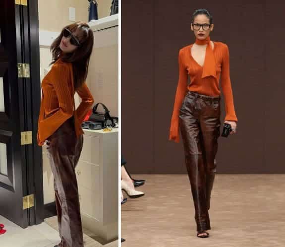 24 Kasım’daki Las Vegas Grand Prix etkinliği için Ferrari‘nin İlkbahar 2025 koleksiyonundan V yakalı bir kazak, fular ve kahverengi deri pantolon kombinini hazırlayan Lisa, ayakkabılarını giyerken deri pantolonunun yırtılması nedeniyle kıyafetini değiştirmek zorunda kaldı. Bunun üzerine Louis Vuitton açık mavi kot pantolon ve Ferrari‘nin FW24 koleksiyonundan bir blazer ceket ile Paris şıklığını yansıtan yeni bir kombin oluşturdu.