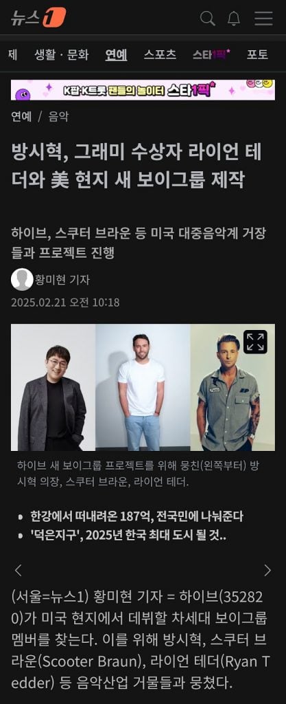HYBE, Grammy ödüllü sanatçı Ryan Tedder ve Amerikan pop müzik sahnesinin önemli isimlerinden Scooter Braun ile birlikte yeni bir proje üzerinde çalışıyor.