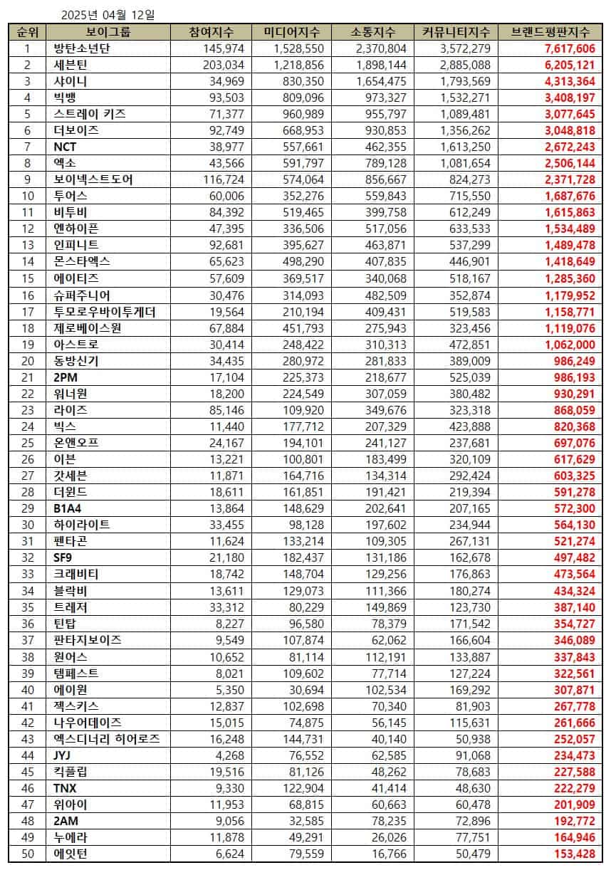 Kore İş Araştırma Enstitüsü, bu ayın erkek idol grupları için marka itibar sıralamalarını açıkladı!