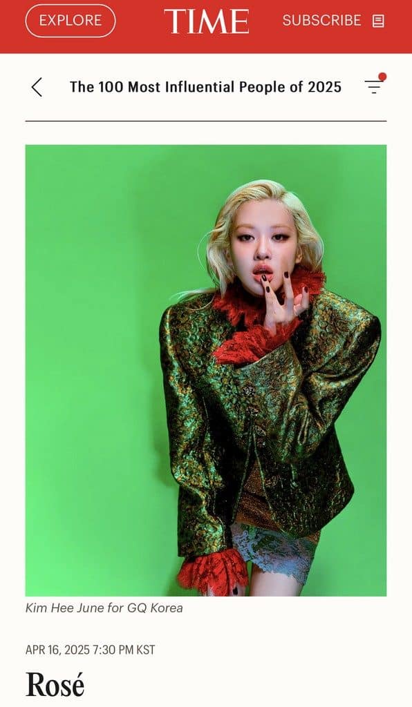 BLACKPINK‘ten Rosé‘nin TIME dergisinin prestijli listesine girmesiyle ilgili tartışmalar sosyal medyada gündem oldu.
