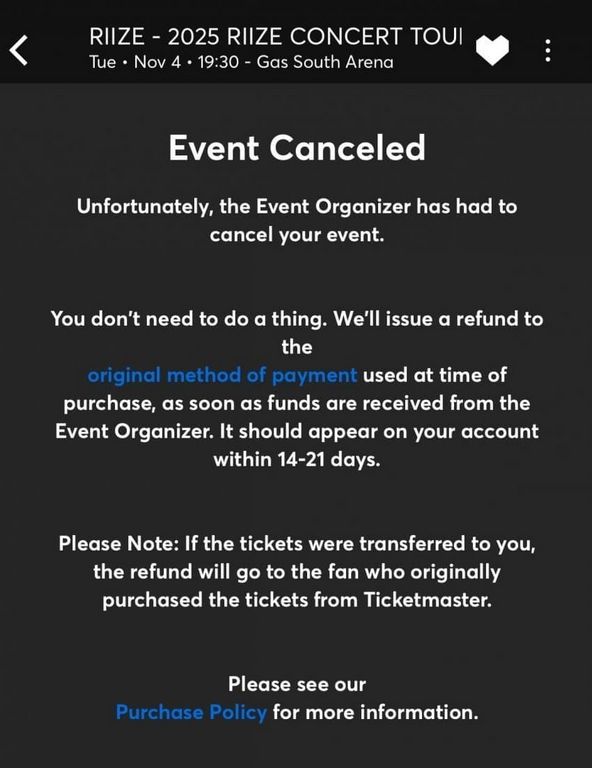 Görünüşe göre arena biletlerinin satışı düşük olduğu için konserler iptal edildi.