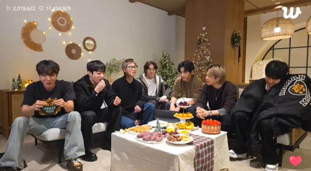 21 Aralık’ta yedi üye RM, Jin, Suga, J-Hope, Jimin, V ve Jungkook, Weverse’de hayranlarıyla sohbet etmek için bir araya geldi.