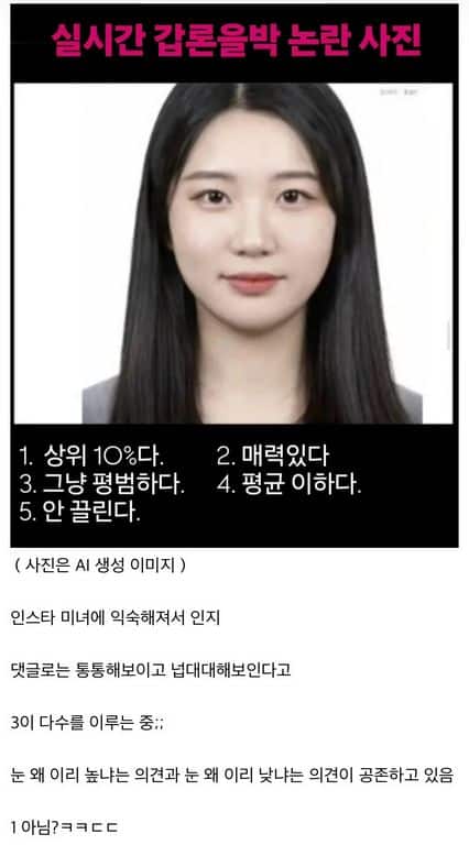 - Bu konu yine mi gündeme geldi ㅋㅋ Bir kadının görünüşünü değerlendirmek için yapay zekayla sanal yüz oluşturacak kadar ileri gitmişler.