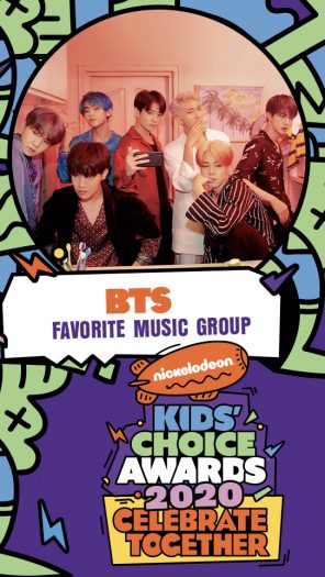 BTS, “2020 Nickelodeon Kids’ Choice Awards“ta ödül aldı! Bu yıl ki Kids’ Choice Ödülleri, 2 Mayıs’ta yapıldı ve COVID-19 salgını nedeniyle “neredeyse” gerçekleşti(!) Ödüller ve performanslar, seyircilerin ve sanatçıların yüz yüze bir etkinliğe
